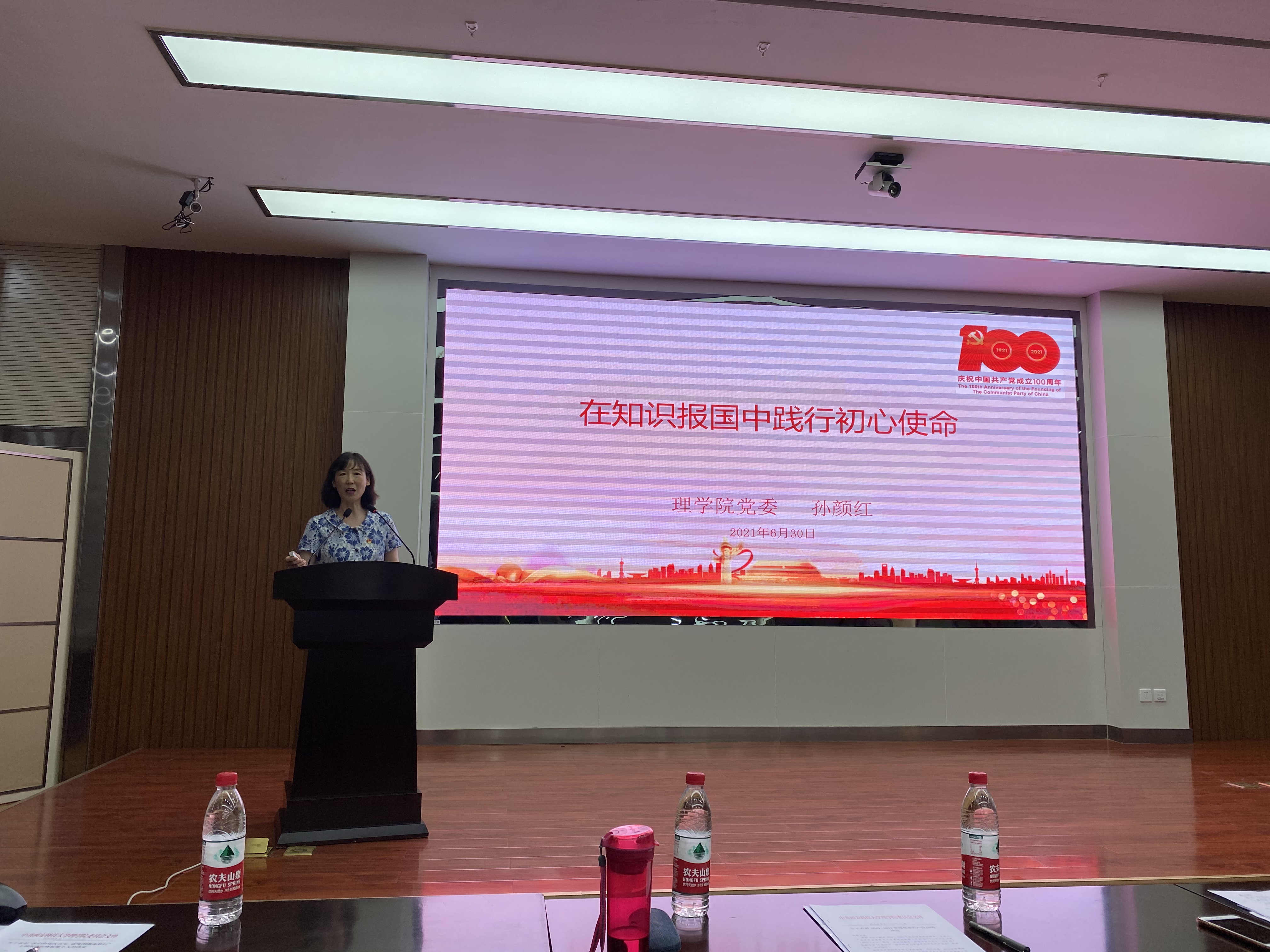 孙颜红进行总结发言,并讲授“在知识报国中践行初心使命”专题党课。她首先对受到表彰的先进集体和个人表示祝贺,总结了本学期以来公司党委及各党支部开展党史学习教育情况。她带领大家再次学习习近平总书记在党史学习教育动员大会上的重要讲话精神和习近平总书记在两院院士大会、中国科协第十次全国代表大会上的重要讲话精神,强调党史学习教育要紧扣“学史明理、学史增信、学史崇德、学史力行”目标任务,切实落实“立德树人”根本任务,她号召公司全体教师要以德育人、勇挑重担、敢于创新,做知识报国的时代榜样,在知识报国中践行初心使命,为实现高水平科技自立自强而奋斗、而奉献,以优异成绩迎接建党100周年。