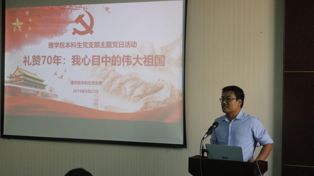 为庆祝新中国成立70周年,祝愿新时代的中国更加富强美丽。9月27日下午,betway西汉姆联官方官网本科生党支部在临潼校区骊山校园实验楼220开展了以“礼赞70年:我心目中的伟大祖国”为主题的党日活动。本科生党支部全体成员参加了活动,活动由党支部书记侯斌刚主持。