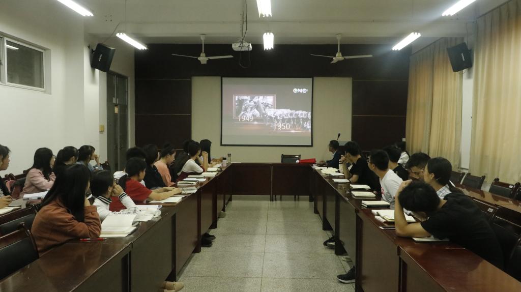 接着支部全体成员集体观看了“70年岁月如歌”短视频,70年过往云烟,但历史上的一桩桩一件件祖国发展壮大的历史事件让全体党员肃然起敬。主题演讲结束后,支部还开展了“礼赞70年:我心目中的伟大祖国”知识竞答活动。