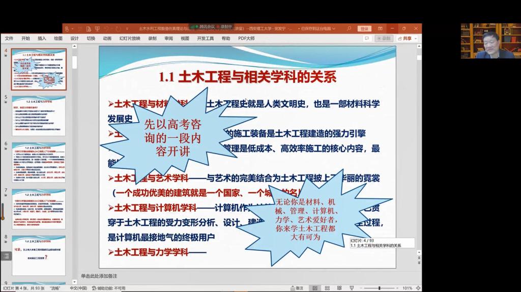 党教授主要围绕土木水利工程数值仿真背景、土木水利工程中的力学问题、数值仿真的力学理论基础、数值仿真的各种有限元方法、各种数值仿真软件简介、土木水利工程数值仿真工程实例等内容进行了系统性地介绍。结合他主持的多个水利水电研究案例,阐述了有限元建模的思路、理论推导、模型敏感参数的探讨和结果分析的过程。