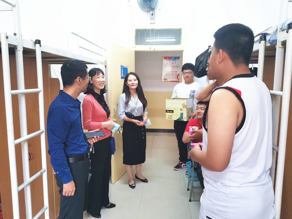 桂香万里,中秋意浓,9月29日下午,理公司党委书记孙颜红、副书记高欣、学工办主任赵明、辅导员侯斌刚来到公寓,给同学们送去了香甜的月饼和节日的祝福,让同学们感受到公司的关怀。各位老师详细的询问学习、生活情况,亲切暖心的交谈,温暖了现场每一个人的心,宿舍里荡漾着节日的温馨与笑声,洋溢着师生间浓浓的情谊。