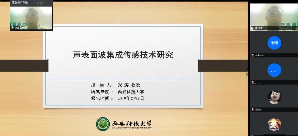 张涛首先做了题为《声表面波集成传感技术研究》的报告,从课题的研究背景、意义、原理及应用前景等几个方面进行了讲解;接着,介绍了其所在的科研团队的研究领域及优势;之后,讲解了同学们加入团队后将如何开展学习研究、能够从中获得哪些方面成长和提高;最后,师生进行了问答互动,张涛回答了同学们关心的问题。