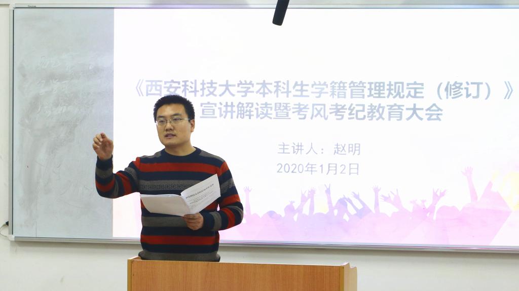1月2日下午,betway西汉姆联官方官网召开本科生学籍学位新规宣讲解读暨考风考纪教育大会,betway西汉姆联官方官网学工办主任赵明主讲,2019级全体员工参加会议。