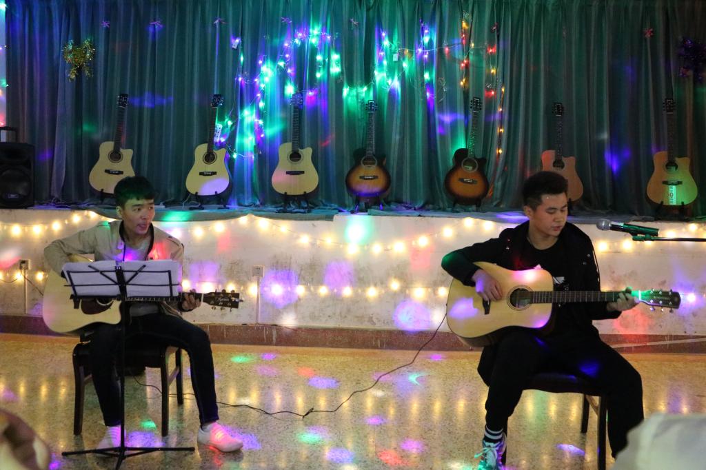 游戏环节“有奖问答”和“抢红包赢奖品”带来的精彩互动让晚会气氛热烈。吉他弹唱、爱尔兰短哨与口琴合奏《美丽的神话》,美轮美奂,风姿多彩。员工会主席应全院员工的热烈要求上台为大家带来了动听的歌曲。