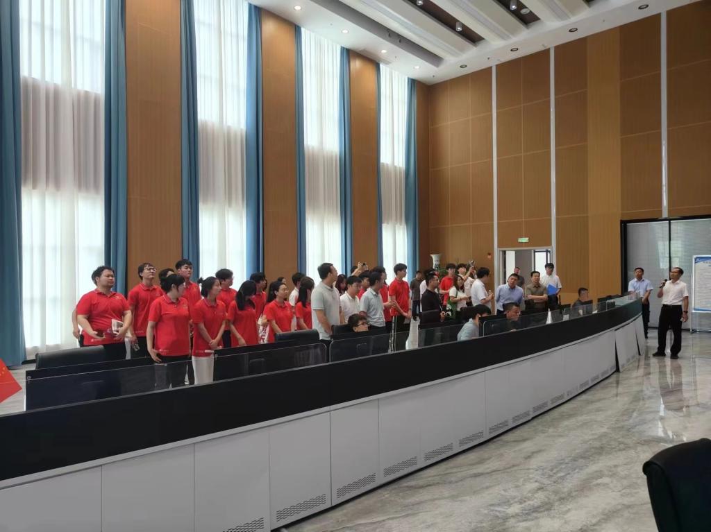 第二站,实践团师生来到了五举煤业公司办公楼。共同观看了企业宣传片,五举煤业公司以生动的画面和详实的数据,展现了其在煤炭开采技术革新、绿色矿山建设、安全生产管理等方面的卓越成就与不懈努力。师生们步入调度指挥中心,这里是整个矿区生产运营的“大脑”,通过高清大屏和先进的调度系统,工作人员展示了如何实时监控矿井生产状况、协调各个环节的生产任务,确保生产安全高效运行。