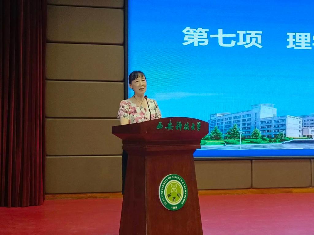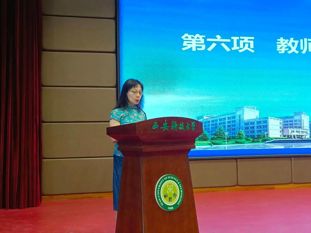 教师代表张慧梅发言。她希望同学们不但要掌握扎实的专业知识,而且要培养独立思考、勇于创新的能力。同时强调学习不仅仅是为了考试和分数,更是为了探索未知、服务社会、实现自我价值。