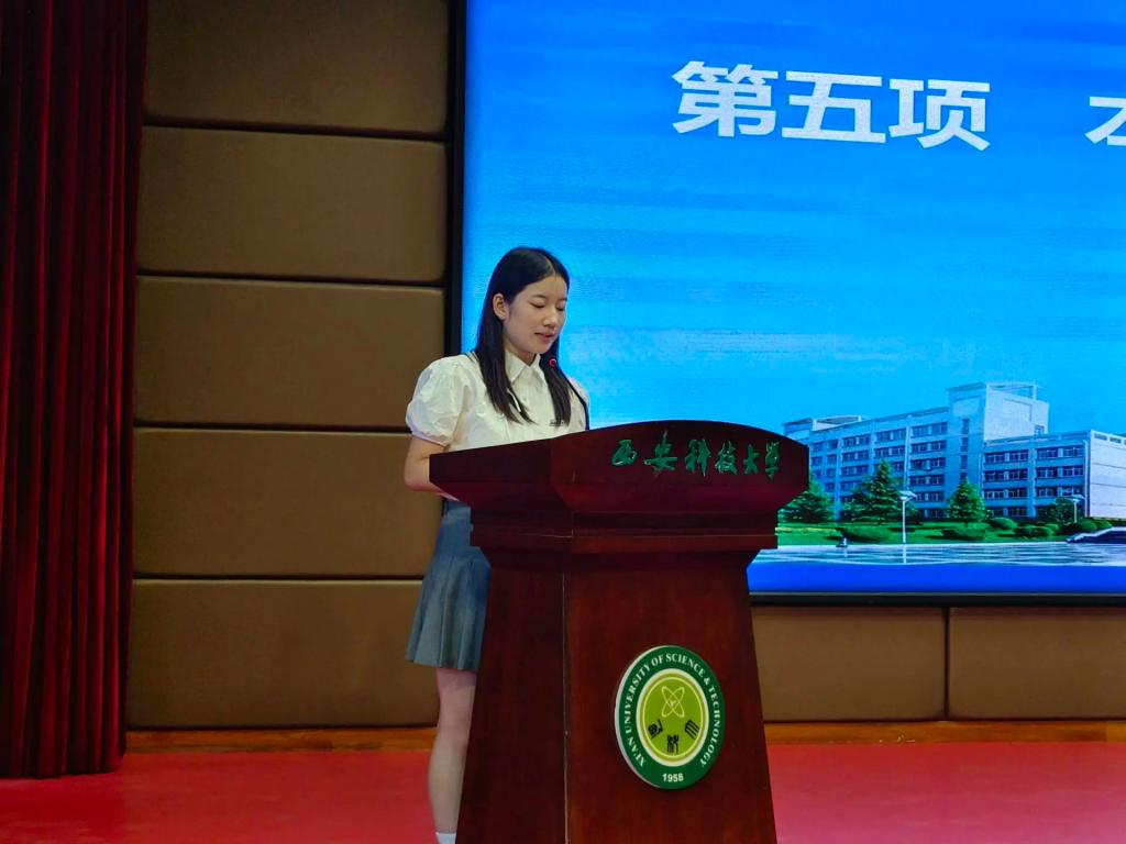 研究生代表彭艳颖发言。她以自己的求学经历为例,分享了从本科生到研究生阶段的成长与蜕变,鼓励同学们要勇于面对挑战,不断突破自我,在科研道路上勇攀高峰。