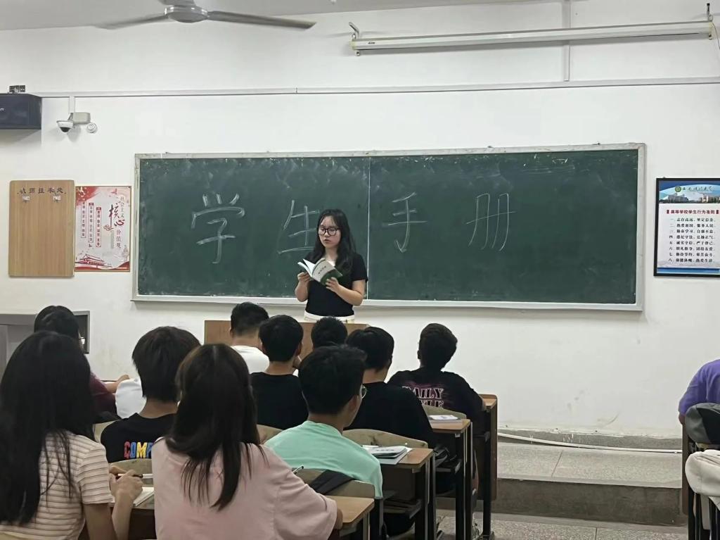 为引导2024级新生深入了解公司员工管理相关规定,提高遵守校规校纪意识,养成独立自主的学习生活习惯。9月19日,2024级新生辅导员薛一丹于一号教学楼自习室带领2024级新生学习《员工手册》。