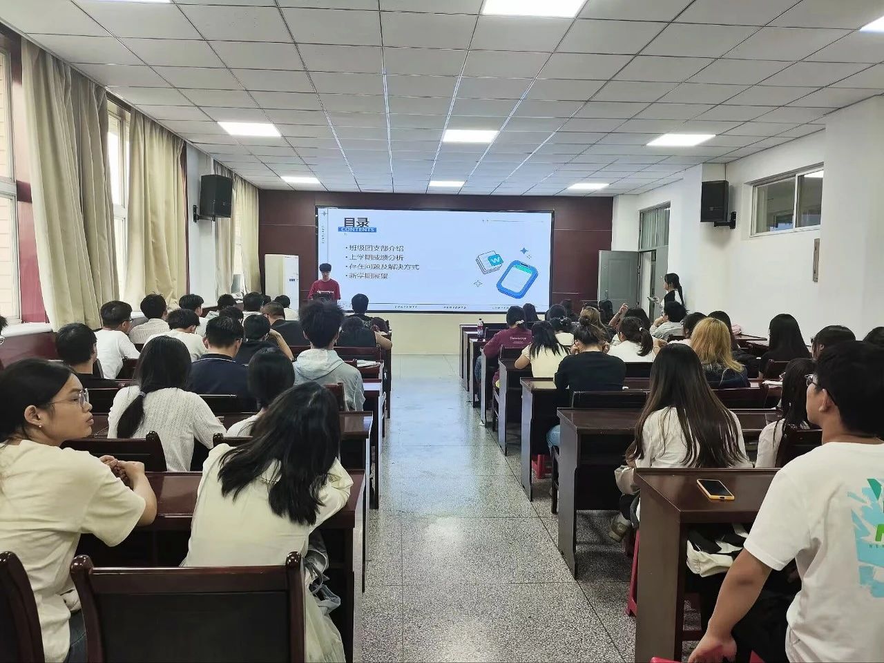 数学与应用数学2302班学习委员王浩骅强调了时间管理与心态调整的重要性,呼吁大家保持积极向上的心态,面对困难不退缩,勇于挑战自我。