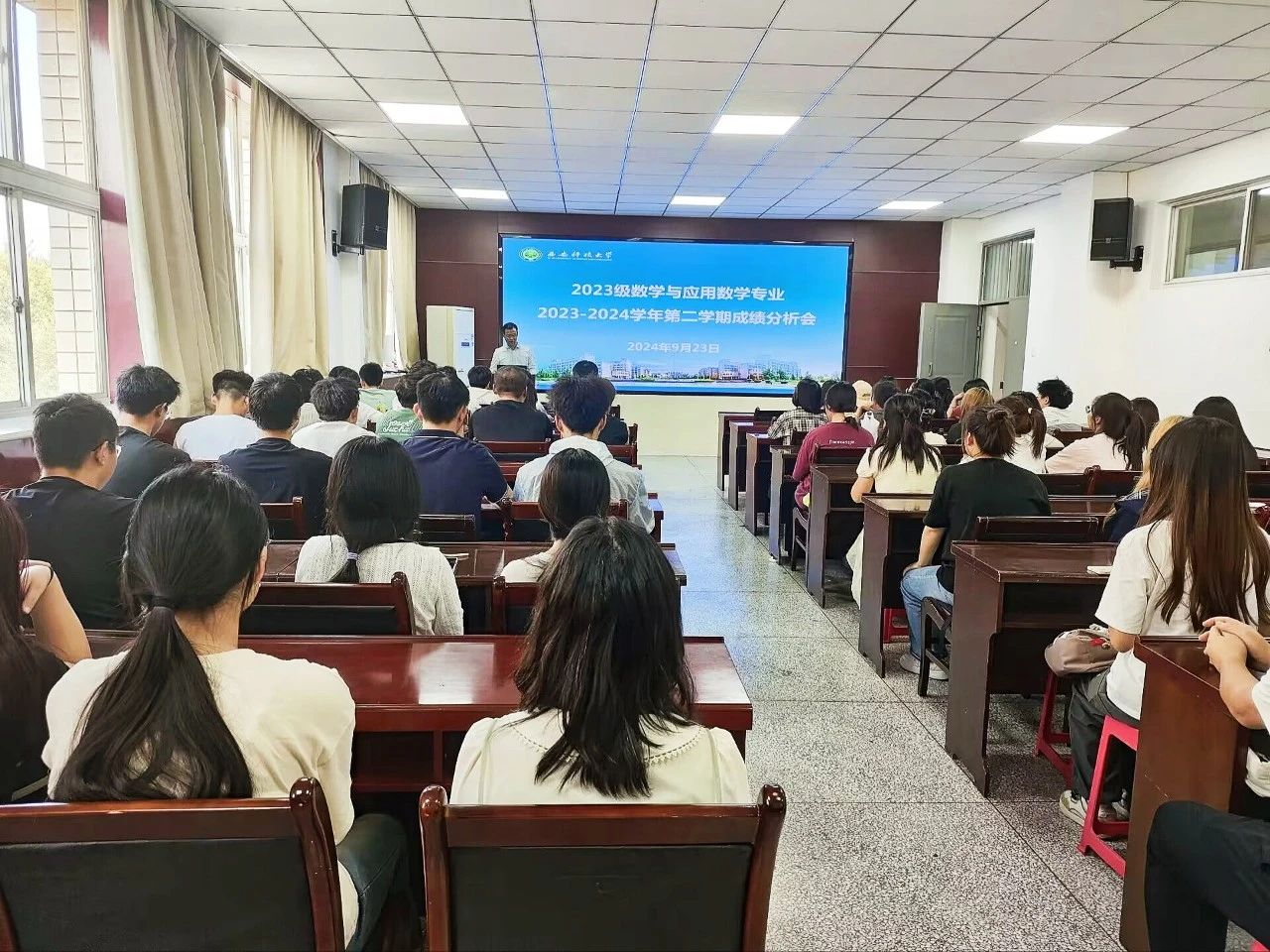 为进一步促进教学质量提升,加强学风建设,激励员工学习热情,9月23日,公司于220会议室召开了2023级数学与应用数学专业本科生成绩分析会。本次会议由2023级辅导员侯斌刚主持,公司党委副书记陈伟伯、2023级数学与应用数学专业全体本科生参加。