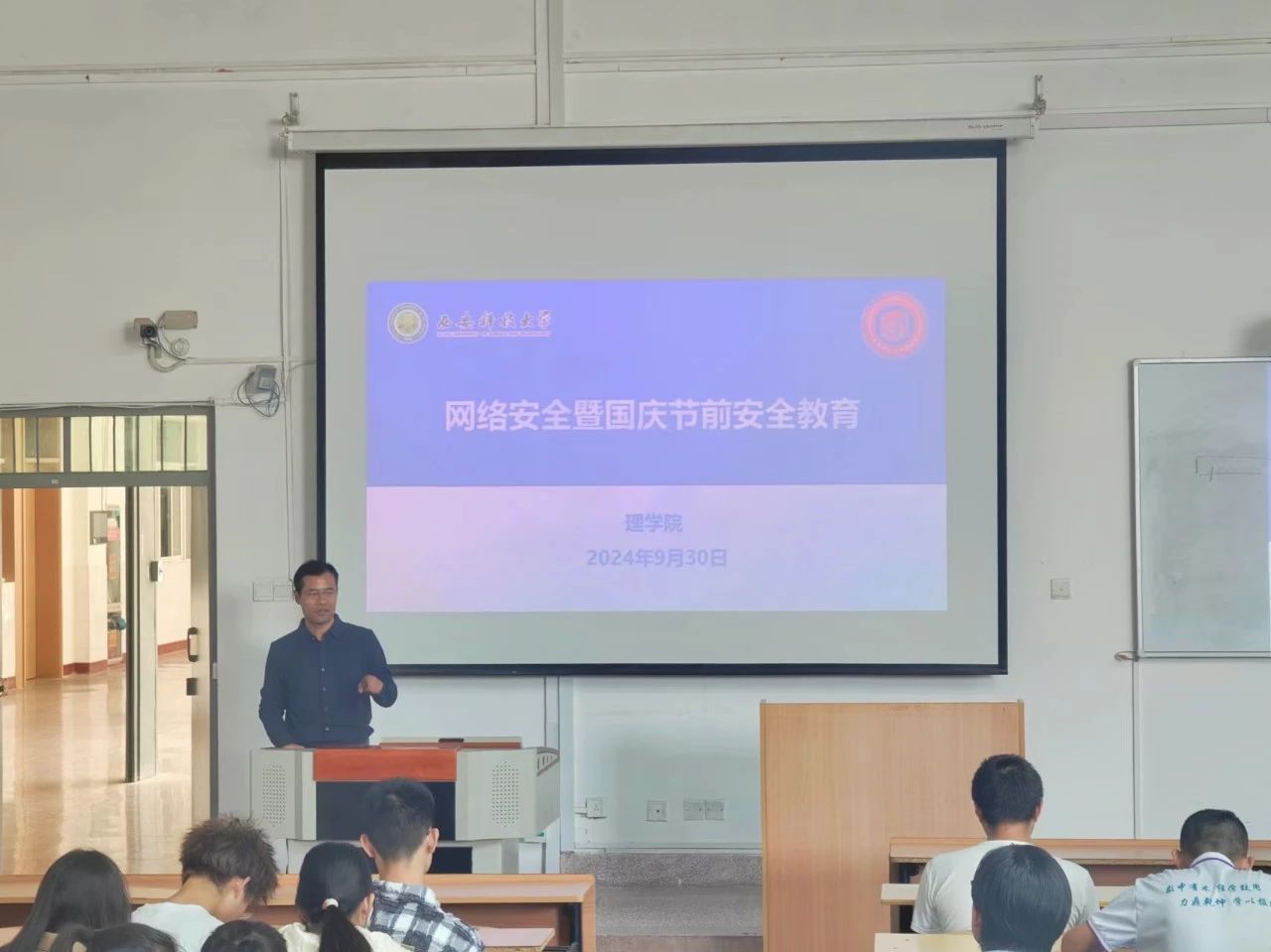 为确保国庆假期期间的安全稳定,增强同学们的网络安全意识,9月30日,公司召开了网络安全暨国庆节前安全教育会。本次教育会由院2021级与2023级辅导员侯斌刚主讲,公司2021级与2023级全体本科生参加。