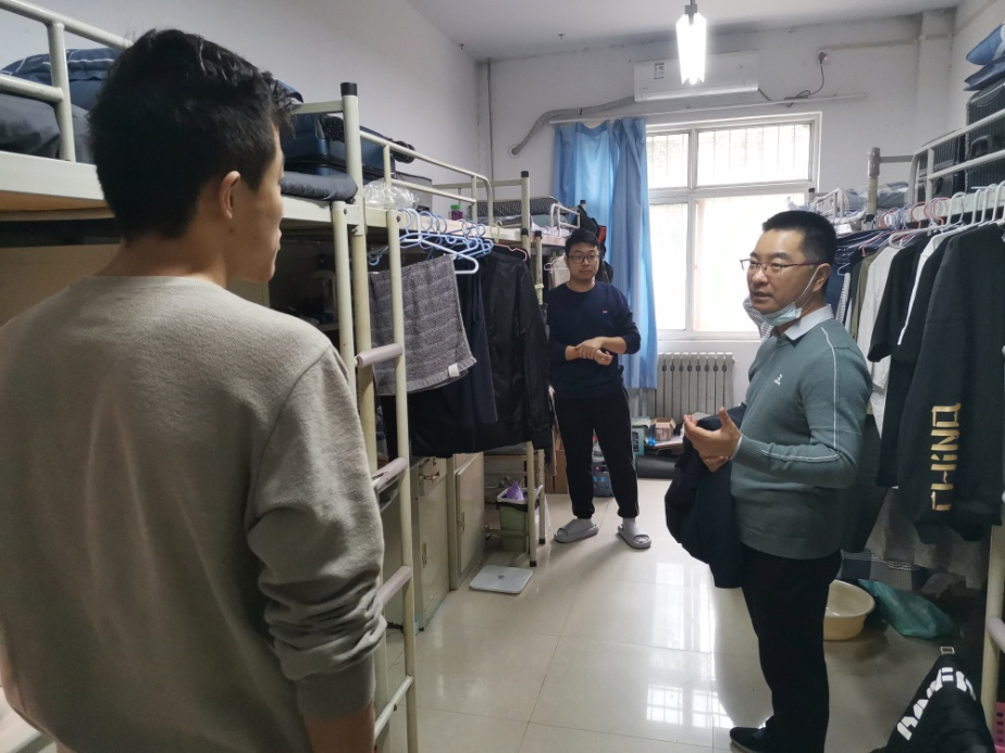 在疫情长期持续的情况下,为及时了解员工的思想动态、心理状况及员工宿舍卫生情况,确保员工工作平稳有序开展,2022年10月19日,经理张仲华、副书记陈伟伯,同各年级辅导员老师一起深入员工宿舍,实地了解同学们的学习生活情况,并为同学们送去关心和问候。