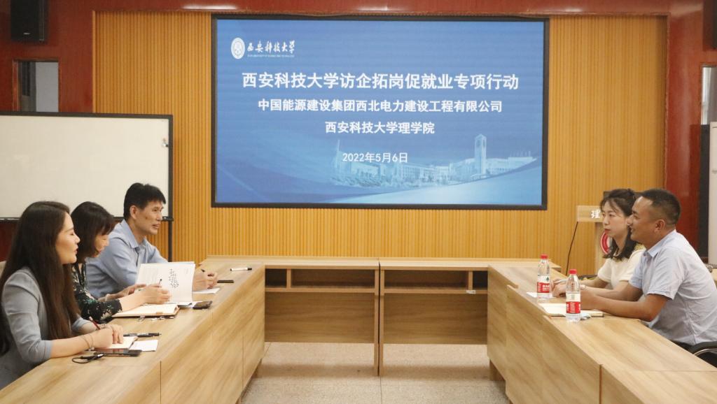 5月6日下午,应我betway西汉姆联官方官网邀请,中国能源建设集团西北电力建设工程有限公司市场开发部主任杨帆一行来公司召开专场招聘宣讲会并就访企拓岗促就业专项行动在208会议室召开座谈会议。