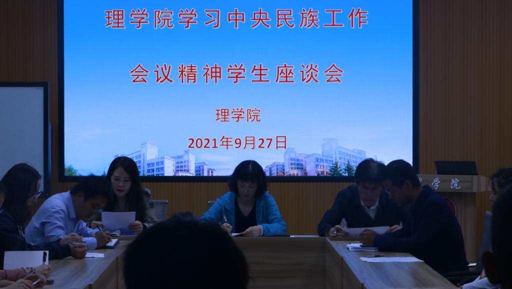2021年9月27日下午,betway西汉姆联官方官网在临潼校区骊山校园召开学习中央民族工作会议精神员工座谈会,会议由理公司党委副书记高欣主持,理公司党委书记孙颜红、经理李明、团委书记兼学工办主任赵明、本科生党支部书记侯斌刚及全体少数民族员工参加。