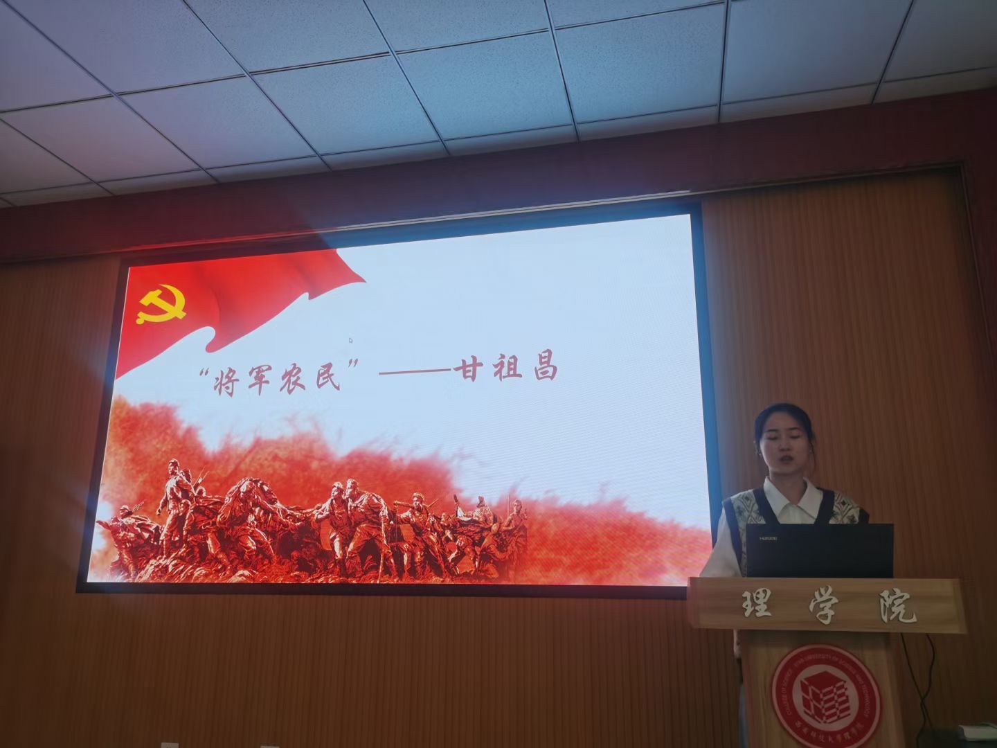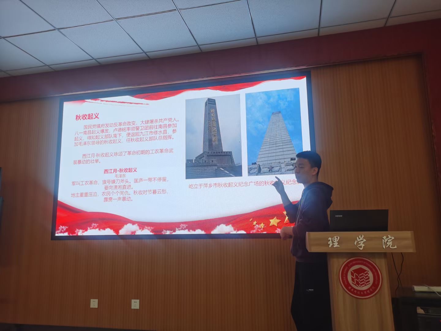 会议最后,研究生党员谢旋、王紫妮分享了江西萍乡的卢德铭烈士、甘祖昌将军的部分英雄事迹。回顾百年党史,就是回顾党领导中国各族人民实现中华民族伟大复兴的“中国梦”的探索史、奋斗史、创业史和发展史,蕴含着丰富的政治营养和精神瑰宝,作为当代青年、作为共产党员,面对着新征程、新使命,仍需初心不改、只争朝夕,撸起袖子加油干。