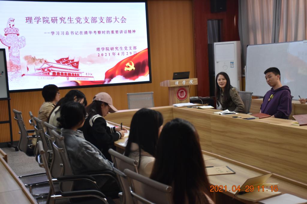 为进一步贯彻落实党史学习教育工作,推动全党深入学习领会习近平新时代中国特色社会主义思想,2021年4月29日上午,理公司党委副书记高欣、研究生党支部书记行珊带领全体研究生党员在betway西汉姆联官方官网会议室举办“学习习近平总书记在清华大学考察时的重要讲话精神”主题党日活动,会议开始之初,首先学习了习近平总书记在清华大学考察时发表的重要讲话精神,大家深刻感悟到广大青年要肩负历史使命,努力成为堪当民族复兴重任的时代新人,让青春在不懈奋斗中绽放绚丽之花。之后,党员同志们一起观看了习近平总书记在清华大学考察的学习视频,视频结束之际,党委副书记高欣表示我们身为“生逢盛世,肩负重任”的一代老员工,身为员工党员,更应该脚踏实地,成为能肩负时代历史使命的时代新人。
