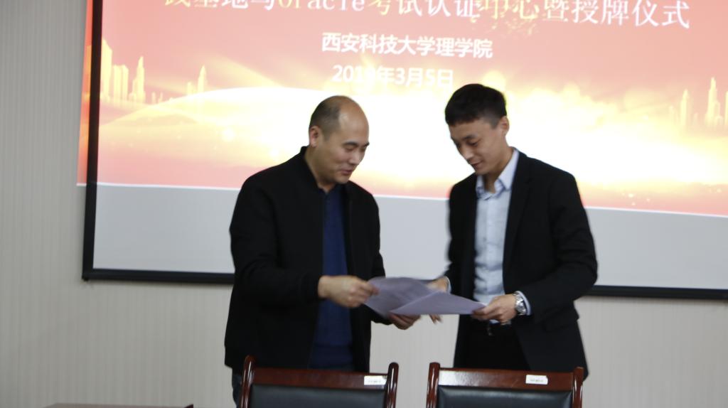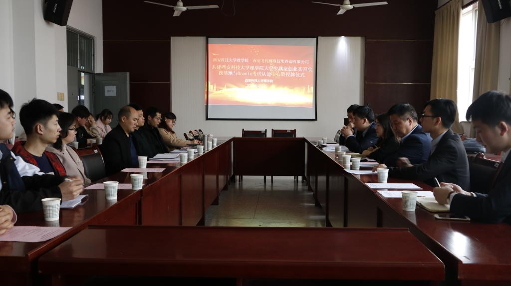 这次会议由主管员工工作的党委副书记高朕栋主持,甲骨文软件系统有限公司西北西南省区项目经理王云清、西安飞凡网络技术咨询有限公司董事长刘磊、总经理汪生英、副总经理陈战伟、技术总监罗言之、betway西汉姆联官方官网主管教学工作副经理解忧、院教务办主任姚红霞、院学工办副主任侯斌刚以及数学系教师葛丹老师和李毅鹏博士及部分员工代表出席了此次仪式。解忧、王云清、刘磊分别进行讲话,王云清和刘磊分别对甲骨文软件系统有限公司和西安飞凡网络技术咨询公司进行了详细的介绍,与员工们进行了交流互动,解决了同学们提出的问题。最后,betway西汉姆联官方官网与西安飞凡网络技术咨询公司签订交换了协议书,举行了授牌仪式,进行了合影留念。