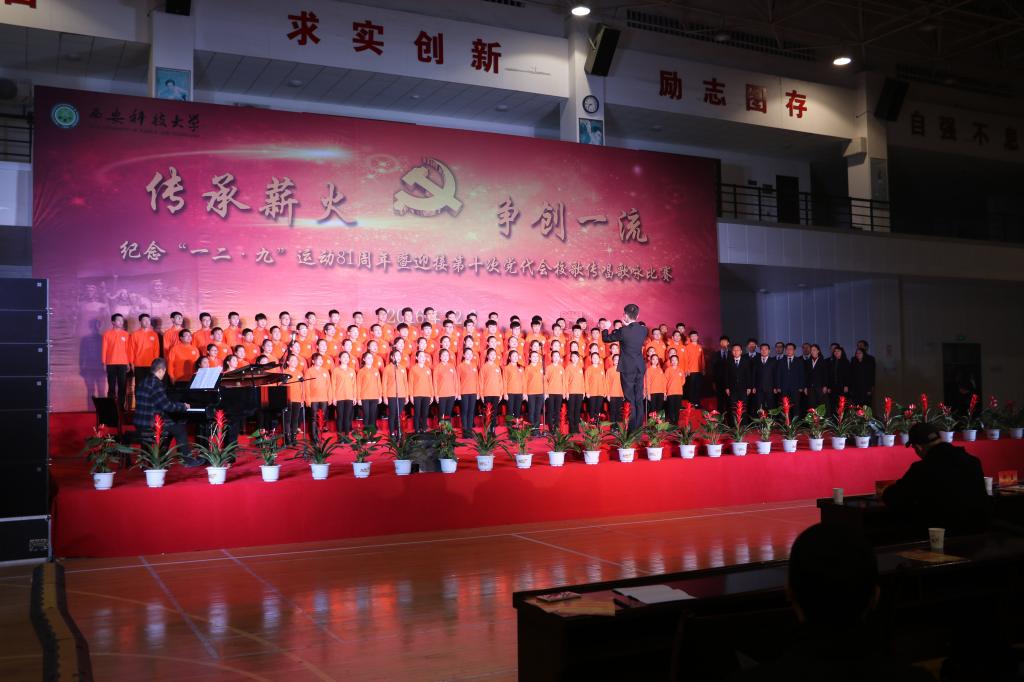 12月8日晚,由校团委主办的一二九大合唱在体育馆举行。公司党委书记刘德安、董事长杨更社,各单位、各部门党政主要负责人,各公司部门分管员工工作的负责人出席了此次活动。