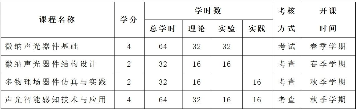 微纳声光器件与智能感知微专业面向全校理工科专业,招生名额30人。微专业修读年限为2个学期(含寒暑假)。成绩单独管理,不计入主修专业成绩单。完成全部课程修满学分的同学可获得公司授予的“微纳声光器件与智能感知”微专业结业证书。