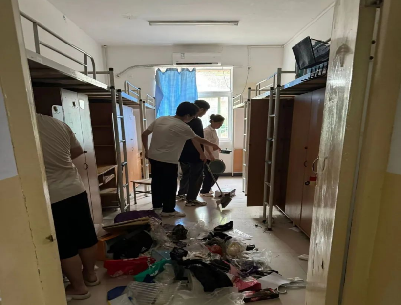 在2024届员工毕业前夕,在员工党员入党和积极分子的带动下开展“留整洁宿舍,还最美告白”毕业生宿舍清扫活动。