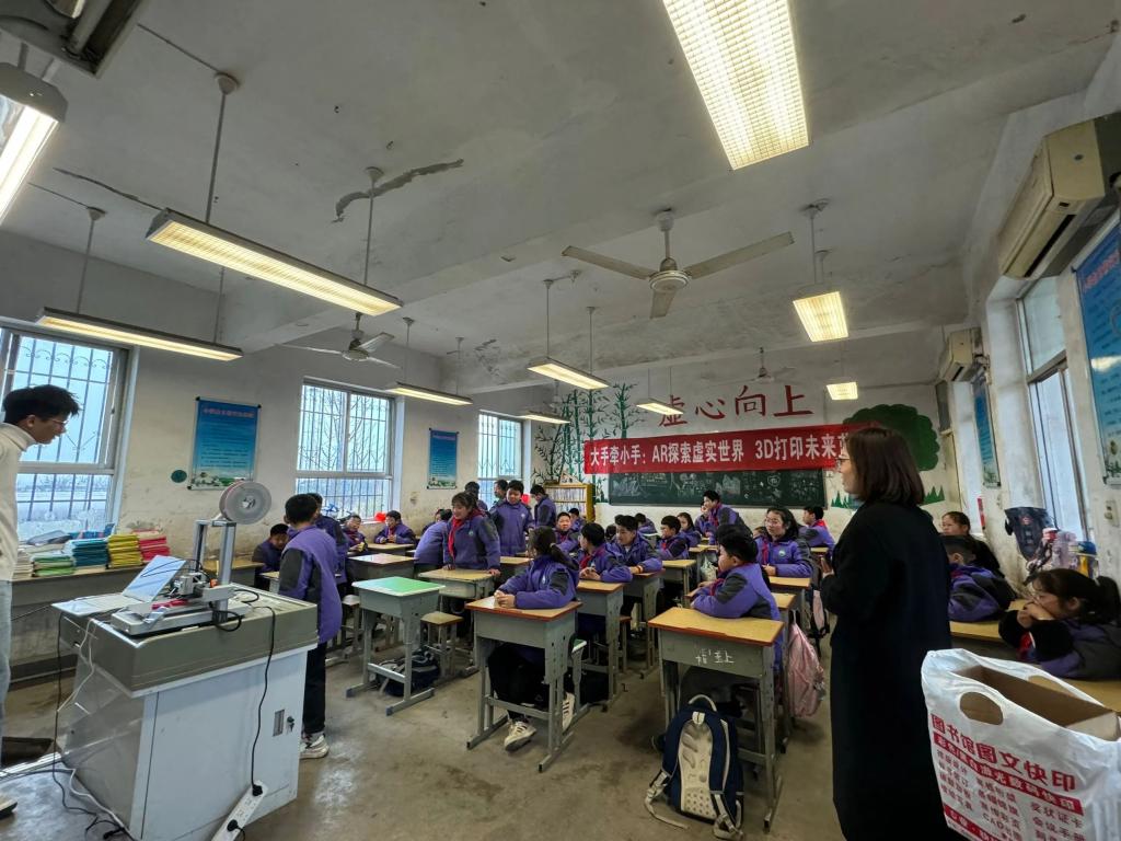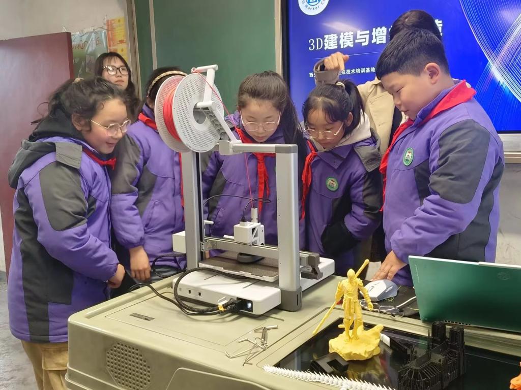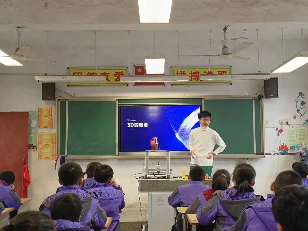 他们详细介绍了DeepSeek这一前沿的AI技术应用平台。DeepSeek以其强大的多模态处理能力,不仅能够实现高效的文本生成与图像创作,还能在医疗诊断、教育辅导等多个领域发挥重要作用。项目组的同学还向孩子们展示了3D打印机的操作过程,并现场打印出了一个小巧精致的模型。从设计到成型,3D打印技术的快速与精准让孩子们惊叹不已。他们还解释了3D打印技术的工作原理,并鼓励孩子们尝试设计自己的3D模型,培养创新思维和动手能