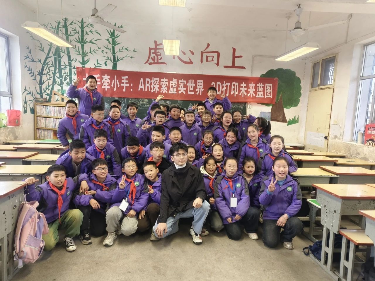 刘佳和虚拟技术项目组的同学向小员工们生动讲解了人工智能(AI)的奥秘。他们深入浅出地介绍了AI的基本概念、发展历程以及在现代社会中的广泛应用,激发了孩子们对未知世界的好奇心。项目组的同学们带来了VR眼镜,让孩子们亲身体验了一场“穿越时空”的奇妙之旅,VR技术让孩子们仿佛置身于另一个世界,感受科技的魅力与无限可能。