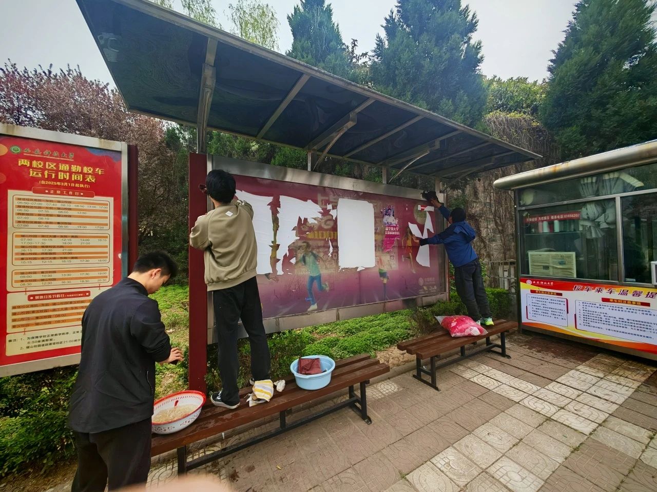 志愿者们准时在校车停放处集合,用浸湿的抹布,认真擦拭车窗、座椅、扶手以及车内的各个角落。经过一下午的不懈努力与辛勤劳动,原本沾满灰尘的校车焕然一新。车身在阳光的照耀下闪闪发亮,车内的座椅、扶手洁净如新,志愿者们的脸上都洋溢着自豪与满足的笑容。