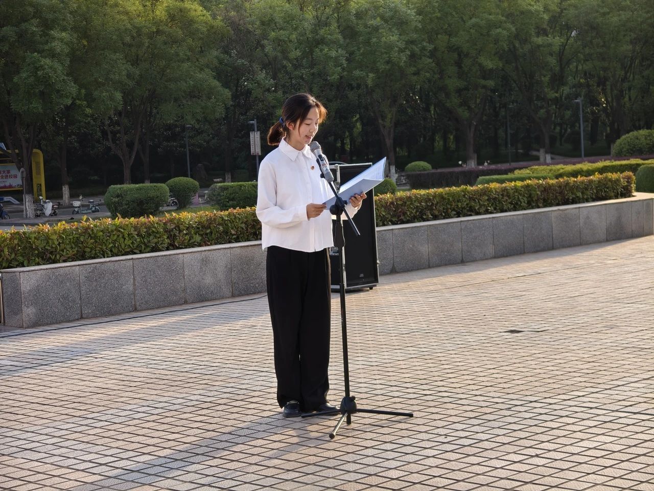 马克思主义公司红言宣讲团的陈昱伶在演讲中回顾了历史上青年奋斗者为国家和民族做出的贡献,阐述了新时代青年肩负的责任与使命。她鼓励同学们以奋斗为笔,在学习和生活中不断磨砺自己,积极投身社会实践,用青春和汗水为实现中华民族伟大复兴的中国梦添砖加瓦,在新时代的舞台上书写属于自己的精彩篇章。