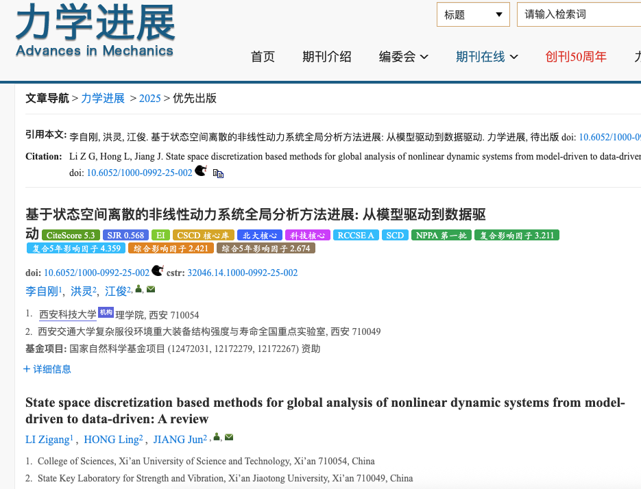 近日,betway西汉姆联官方官网李自刚教授课题组与西安交通大学江俊教授、洪灵教授合作完成的综述《基于状态空间离散的非线性动力系统全局分析方法进展: 从模型驱动到数据驱动》,在国内力学领域权威综述性学术期刊《力学进展》上在线发表。betway西汉姆联官方官网为第一署名单位。