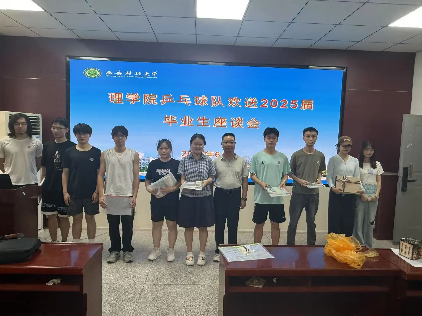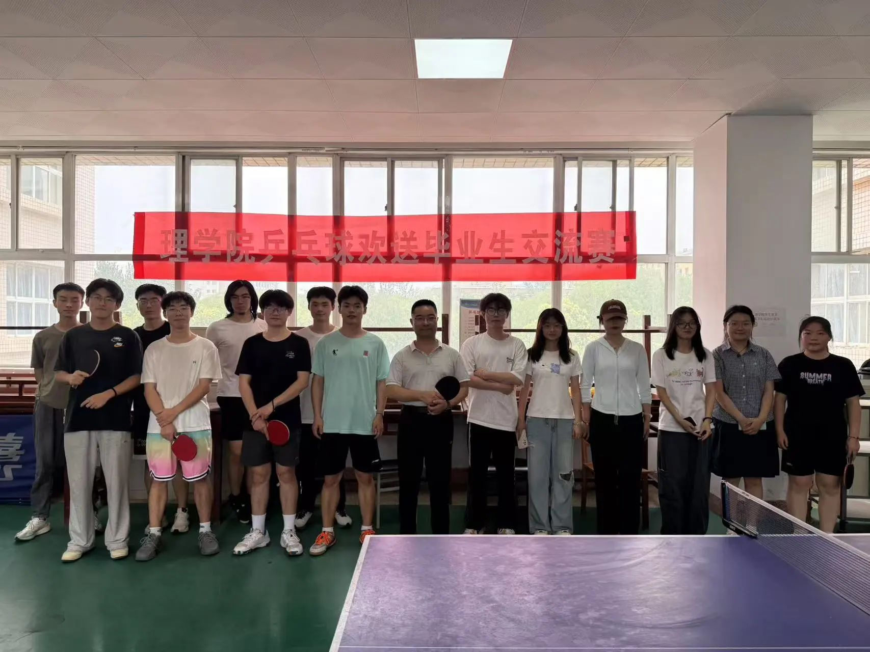 6月22日,betway西汉姆联官方官网在骊山校园4号楼三楼活动室举办 “欢送2025届毕业生乒乓球友谊赛”,以球为媒欢送毕业生,搭建师生情感交流桥梁。理公司党委副书记陈伟伯、大四毕业生代表及公司乒乓球队成员齐聚赛场,在拼搏与欢笑中留下难忘毕业记忆。