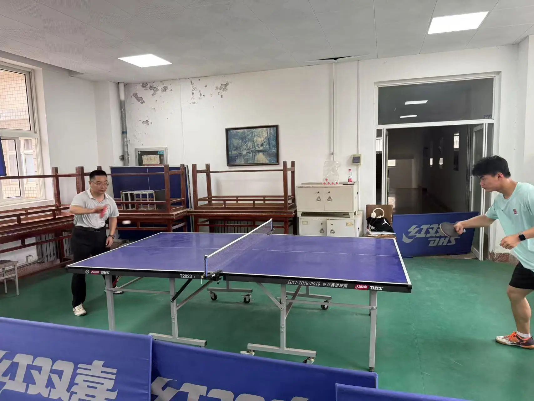 本次比赛设置男单、女单、混双等多元项目,吸引20余名师生报名参与。赛场上,毕业生凭借扎实球技频频施展扣杀、旋转球等技巧,展现出沉稳从容的 “老将” 风范;在校生则以敏捷反应和旺盛斗志积极应战,飞身救球、极限反拉等精彩瞬间点燃全场气氛。最令人瞩目的师生混双环节中,陈伟伯与毕业生代表组成 “跨界组合”,与在校生联队展开激烈对决。双方默契配合、攻防转换间,既有战术博弈的紧张感,也有师生互动的温情瞬间,精彩场面赢得观众席阵阵喝彩。