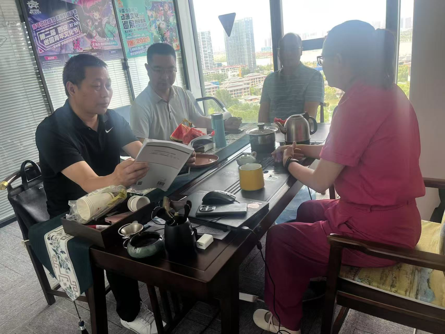 陈伟伯与解忧分别就员工实习实践管理、联合培养模式创新等具体合作细节与企业方交换了意见。数智腾云科技代表田璐、张梦丽对公司领导的到访表示热烈欢迎,高度认可公司的人才培养质量,并表达了深化校企联动、共育适配行业未来的数理人才的积极意愿。