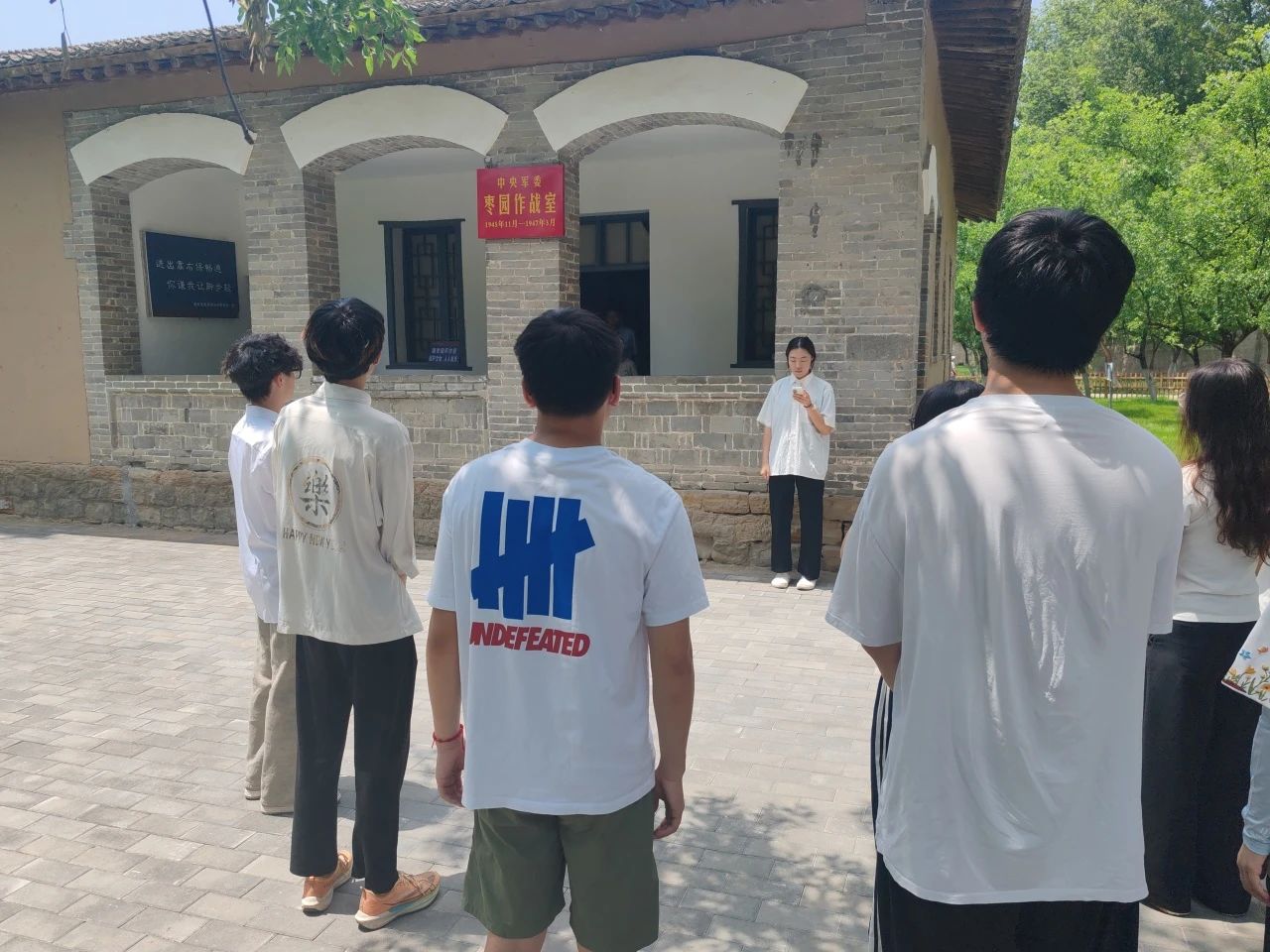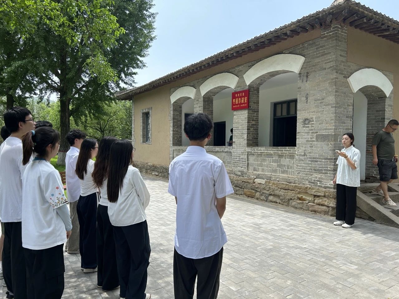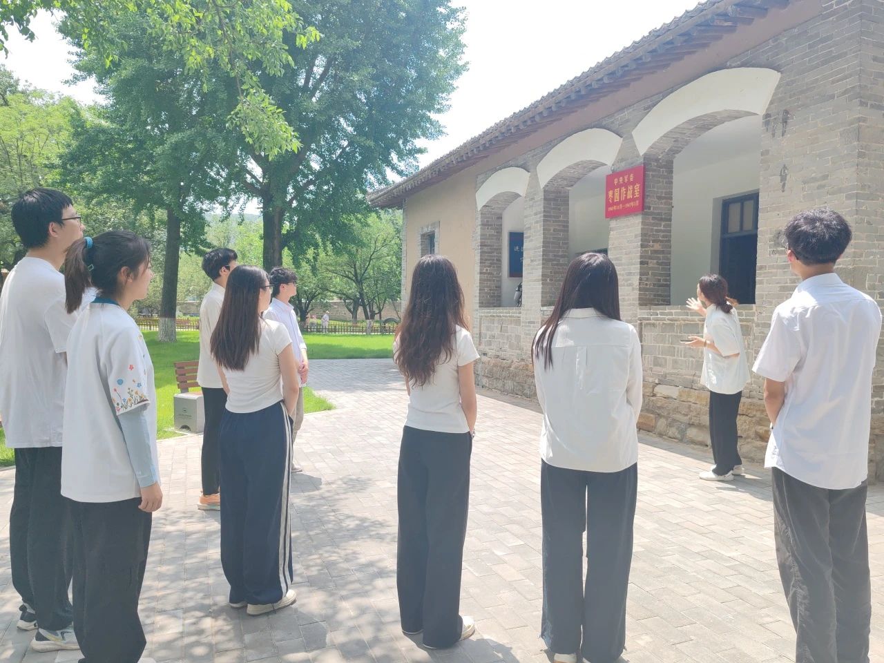枣园革命旧址坐落于陕西省延安市宝塔区枣园镇,是中共中央书记处 1943 年 10 月至 1947 年 3 月的驻地,在中国革命史上有着举足轻重的地位。这里绿树成荫、窑洞错落,完好保存着毛泽东、周恩来、刘少奇、朱德、任弼时等老一辈无产阶级革命家的旧居。在艰苦的战争年代,党中央在此领导了抗日战争、解放战争和整风运动、大生产运动,为夺取全国胜利奠定了坚实基础。漫步于旧址之中,古朴的窑洞、斑驳的桌椅、泛黄的文献,无不诉说着那段波澜壮阔的革命岁月,让同学们深切感受到老一辈革命家在艰苦环境中坚守信仰、为国为民的崇高精神。“老一辈革命家在如此简陋条件下擘画救国蓝图,这种精神值得我们永远学习。” 同学们感慨道。