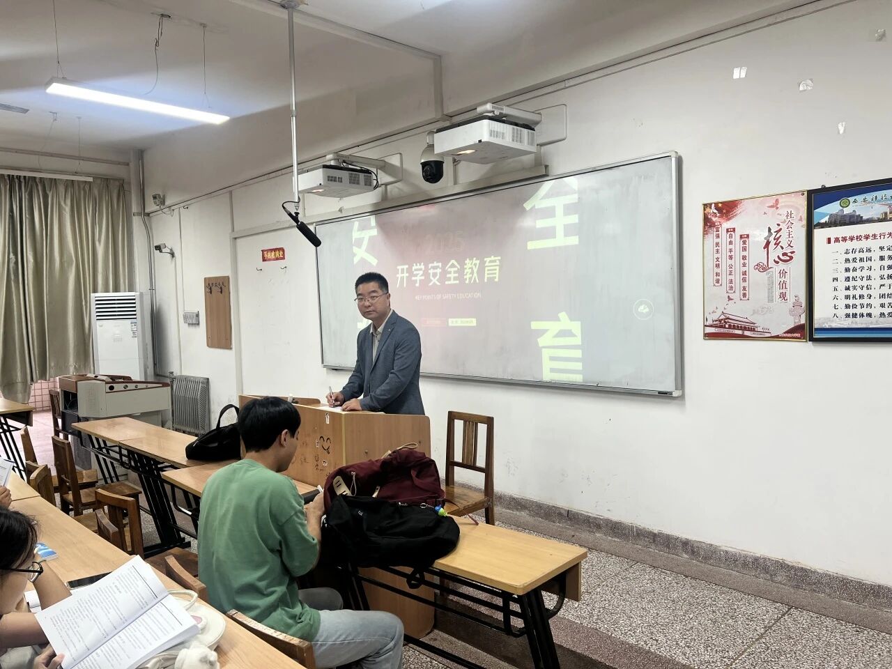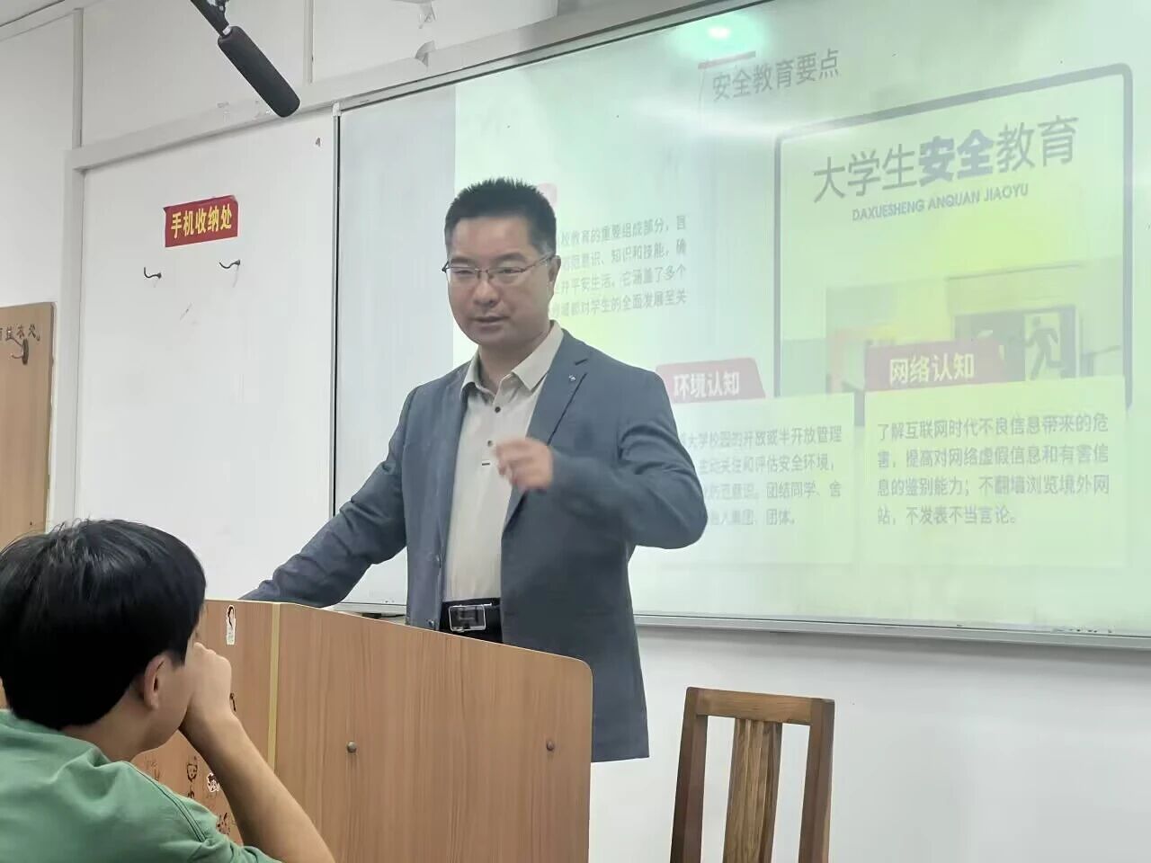 随后,陈伟伯开展了安全教育部分。他结合校园内外实际案例,从宿舍安全、实验室安全、出行安全等多个方面进行了详细阐述。在宿舍安全方面,他提醒同学们注意用电安全,严禁使用违规电器;在实验室安全方面,强调必须严格遵守实验操作规范,落实防护措施;在出行安全方面,告诫大家应遵守交通规则,增强防诈骗意识,切实保护个人财产与人身安全。