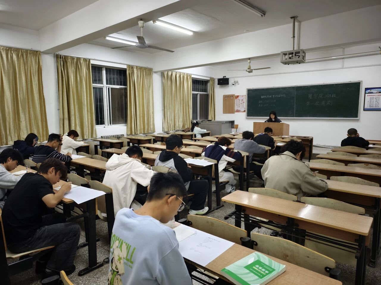 本次考试聚焦《高等数学》《大学英语》《数学分析》和《高等代数与解析几何》这四门学科的前期核心知识点,旨在夯实同学们的理论基础。开考前,监考的同学强调了考场规则,确保了考试流程的清晰与规范。考试过程中,考场内外秩序井然,只闻笔尖沙沙作响;同学们或凝神思索,或奋笔疾书,将开学至今所学的知识倾注于答卷之上,充分展现了理院学子笃实严谨的求学态度。