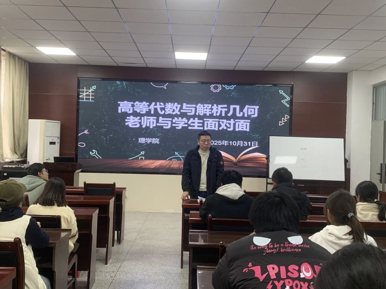 互动环节中,同学们踊跃发言,提出了诸多针对性问题。有的困惑于矩阵运算的复杂逻辑,有的对空间解析几何定理的应用把握不准,还有同学反映在知识点串联整合方面存在困难。王健康耐心细致地逐一解答,结合具体例题,从定理推导到解题思路层层剖析,帮助同学们理清知识脉络。对共性问题,他还通过板书演示,让抽象知识变得通俗易懂。