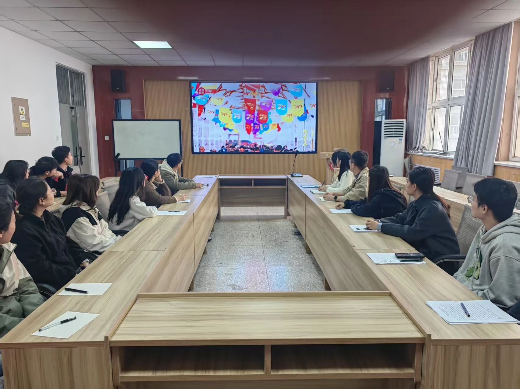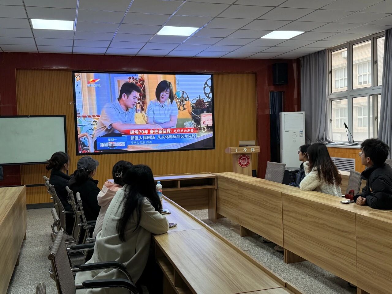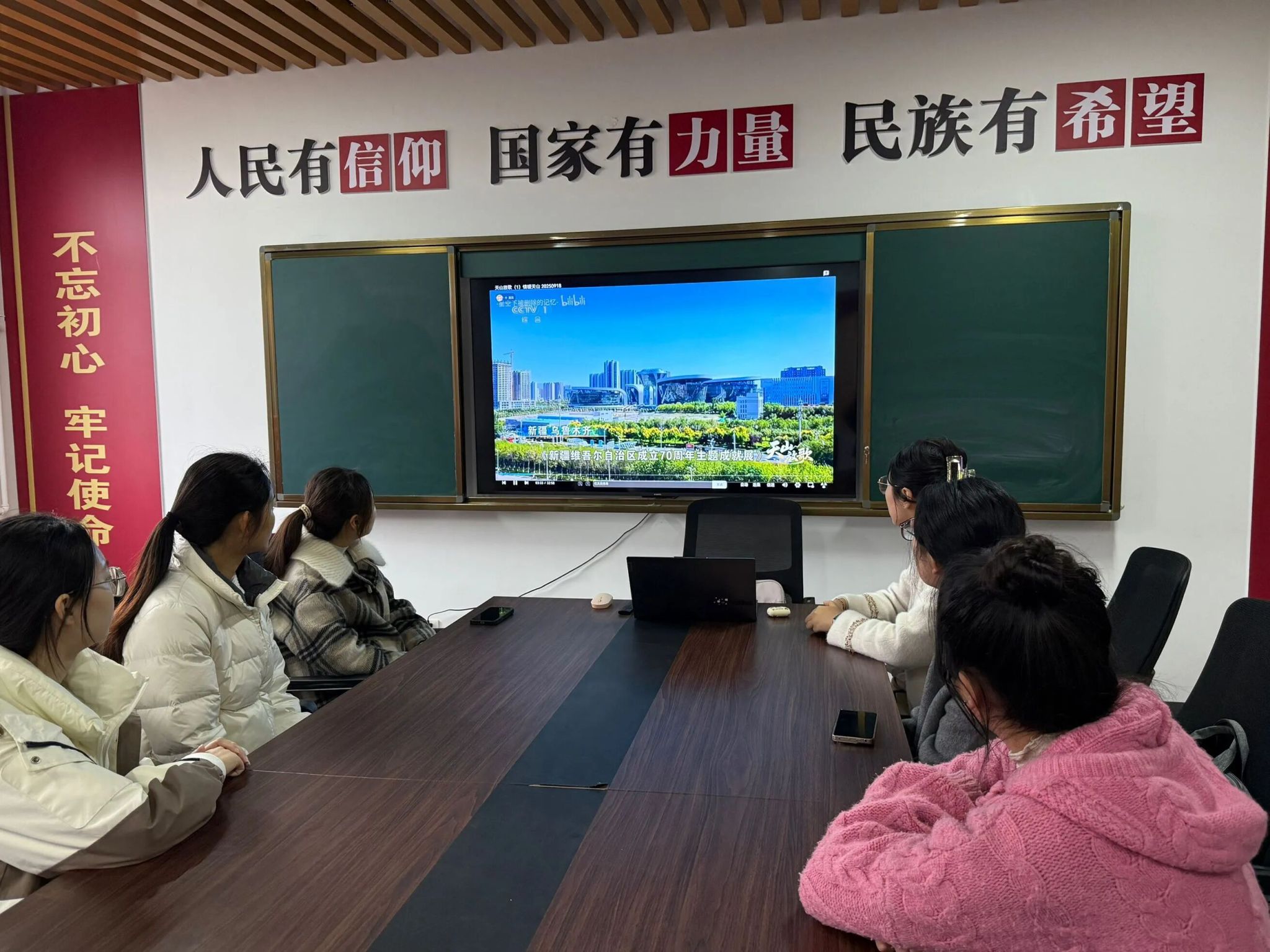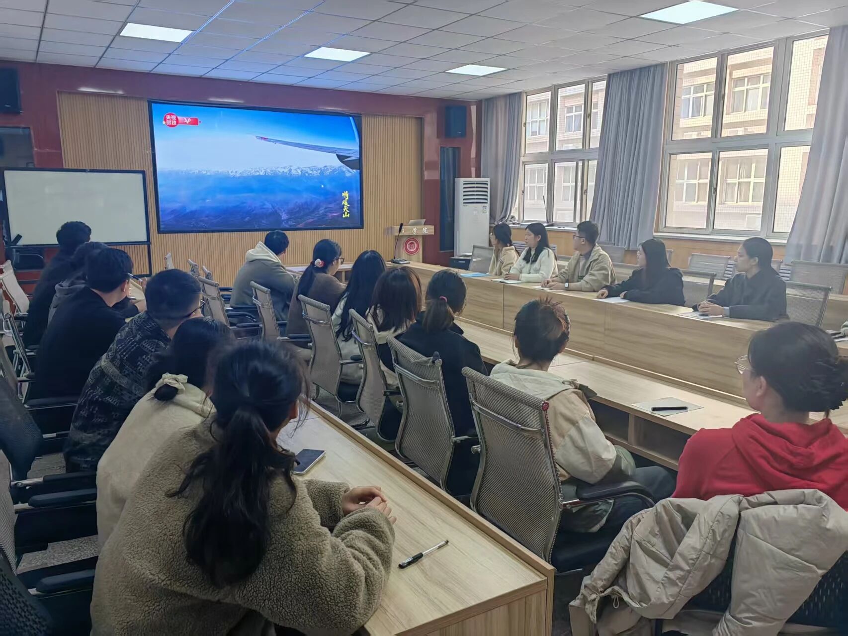 本次活动聚焦新时代党的治疆方略、中国(新疆)自由贸易试验区建设、老员工志愿服务西部计划及新疆人才引进政策等重点内容。同学们共同观看了《情暖天山》《光辉征程·何以新疆》等时政纪录片,通过生动的影像资料,深入了解了新疆维吾尔自治区成立70年来的发展成就和未来规划。
