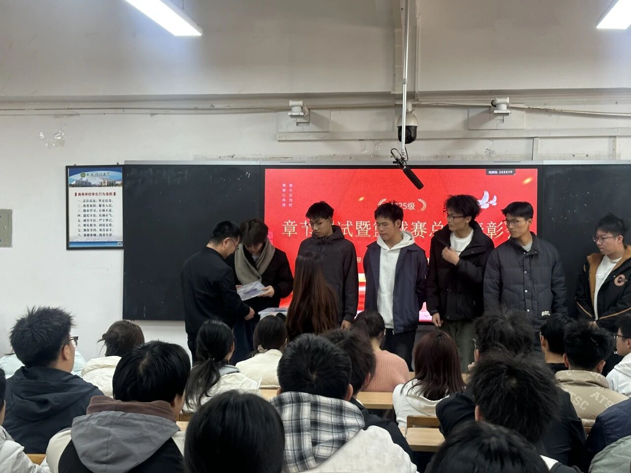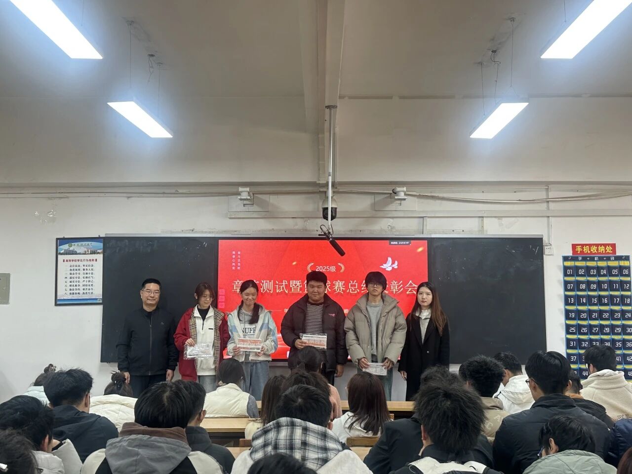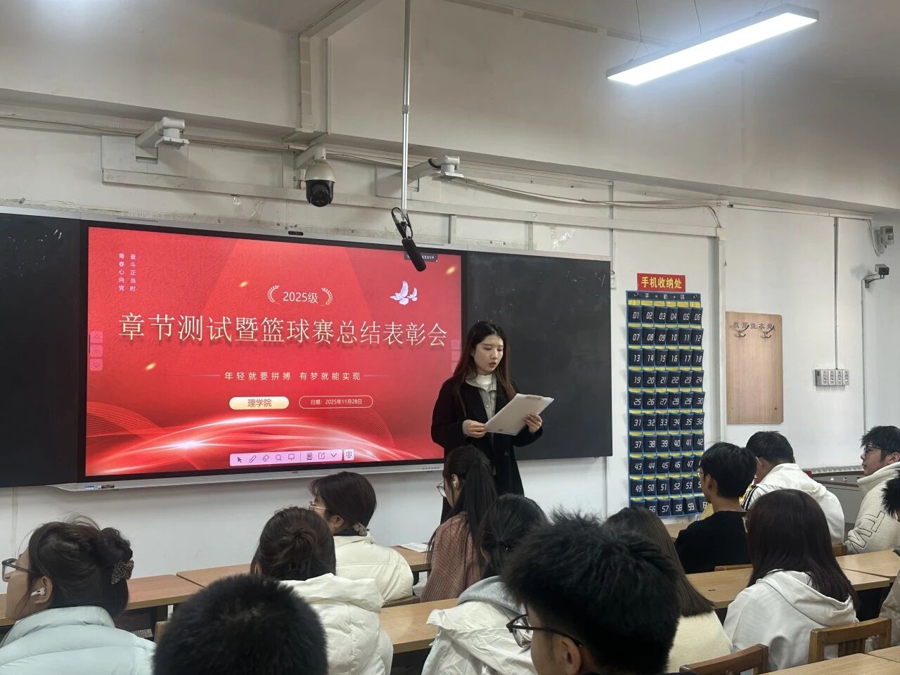 为全面检验阶段性学习成果,并增强年级凝聚力与集体荣誉感,11月28日,betway西汉姆联官方官网于3-513教室顺利举办2025级章节测试暨篮球赛总结表彰会。会议由2025级辅导员段佳主持,公司党委副书记陈伟伯及2025级全体本科生共同参与。
