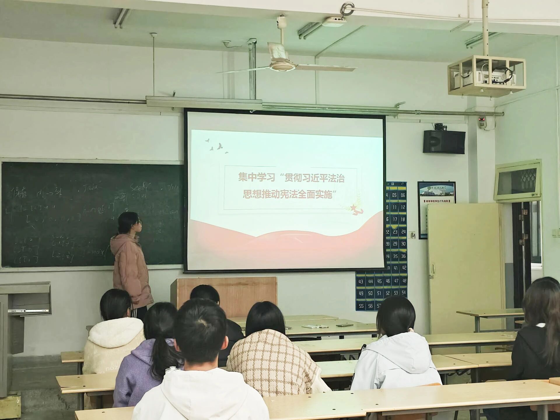 为深入学习宣传宪法精神,增强青年员工的法治观念与制度自信,11月30日,公司数学与应用数学2501班于1-605教室举办了“尊崇宪法法律——弘扬宪法精神,坚定制度自信”主题团日活动。活动由数学与应用数学2501班团支书赵佳瑞主持。