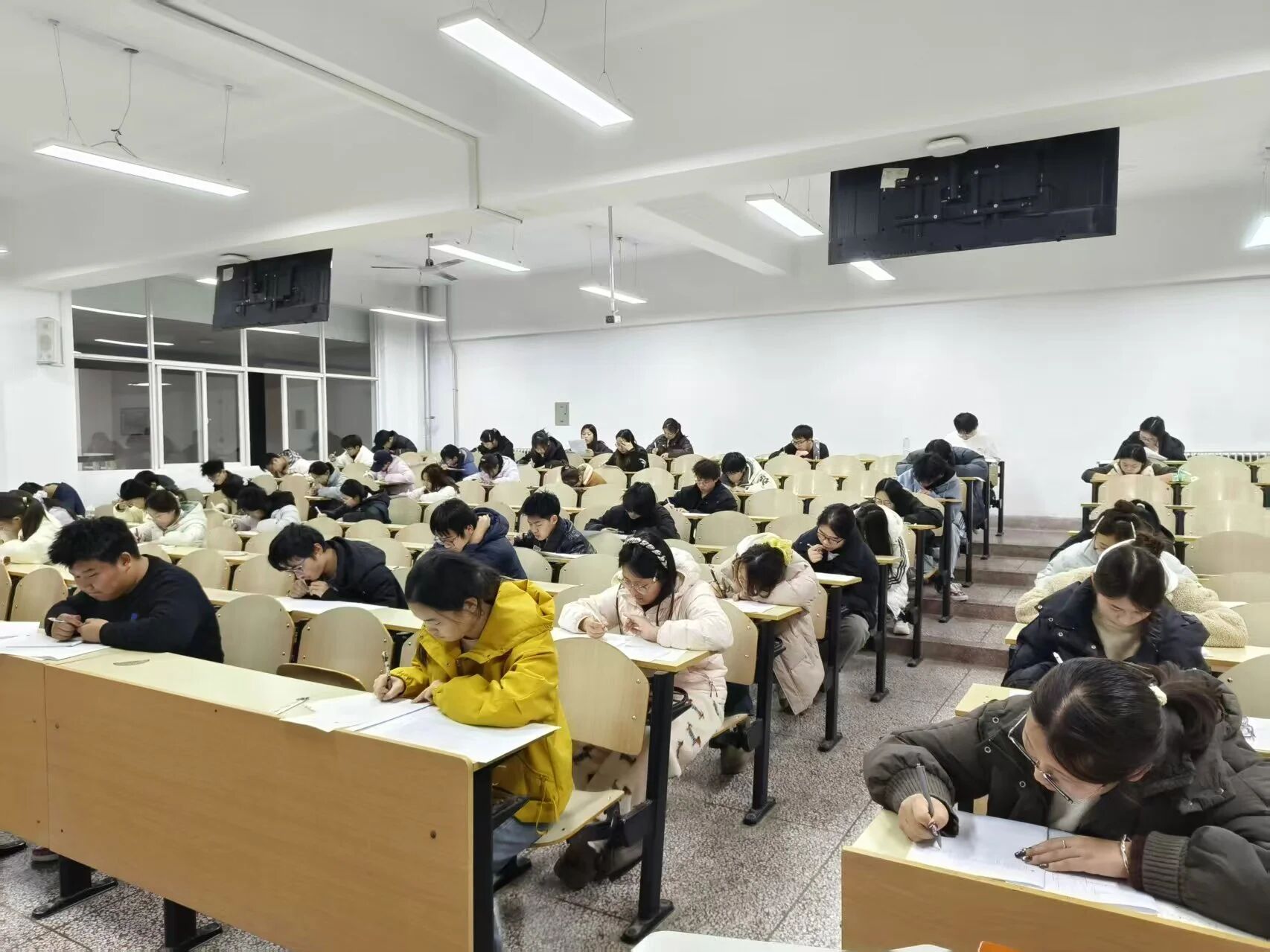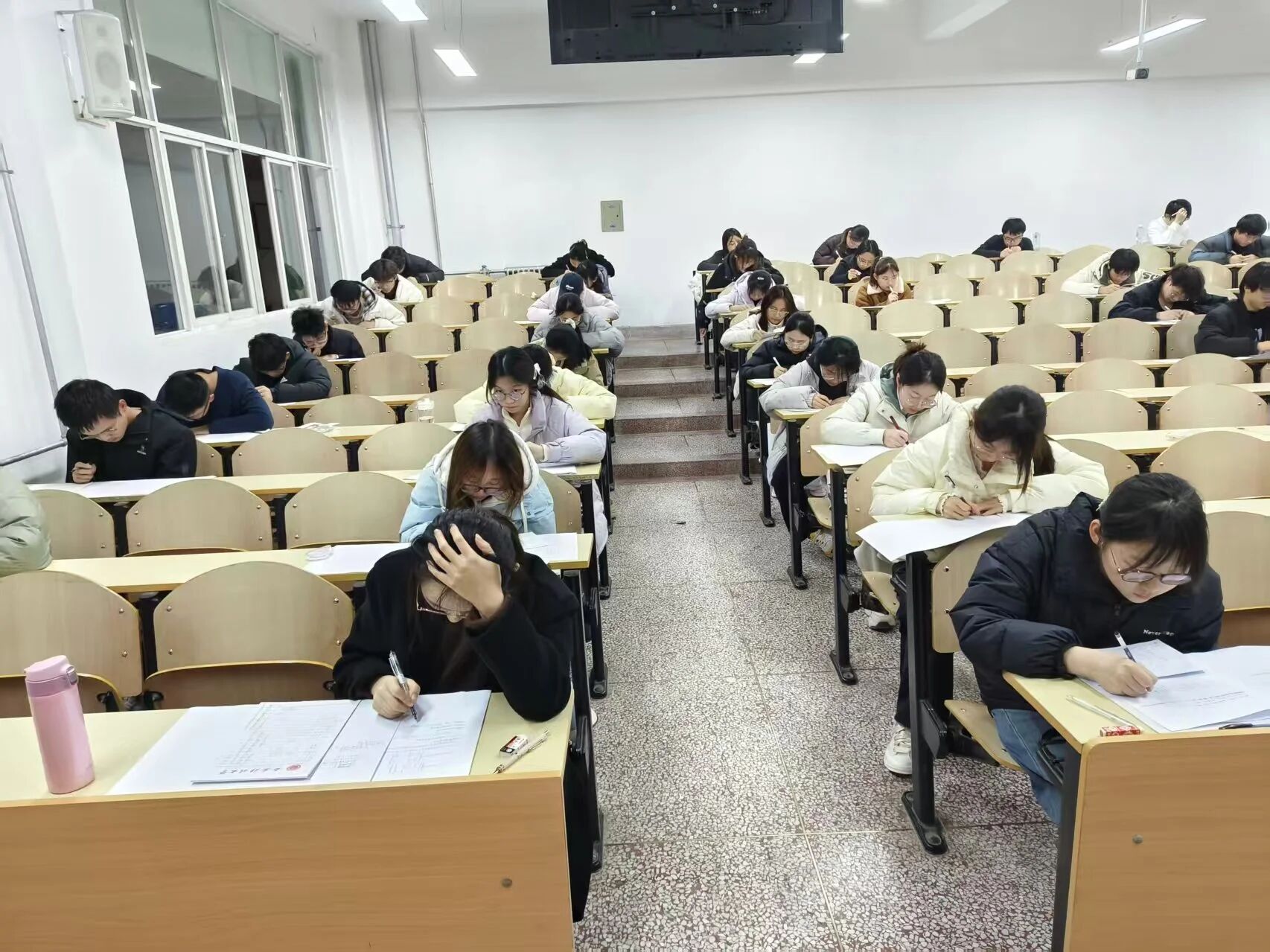 考试开始前,同学们提前抵达考场,自觉将个人物品放置于指定区域,有序就座,展现出良好的纪律意识与备考状态。监考人员宣读考场规则后,考试准时开始。