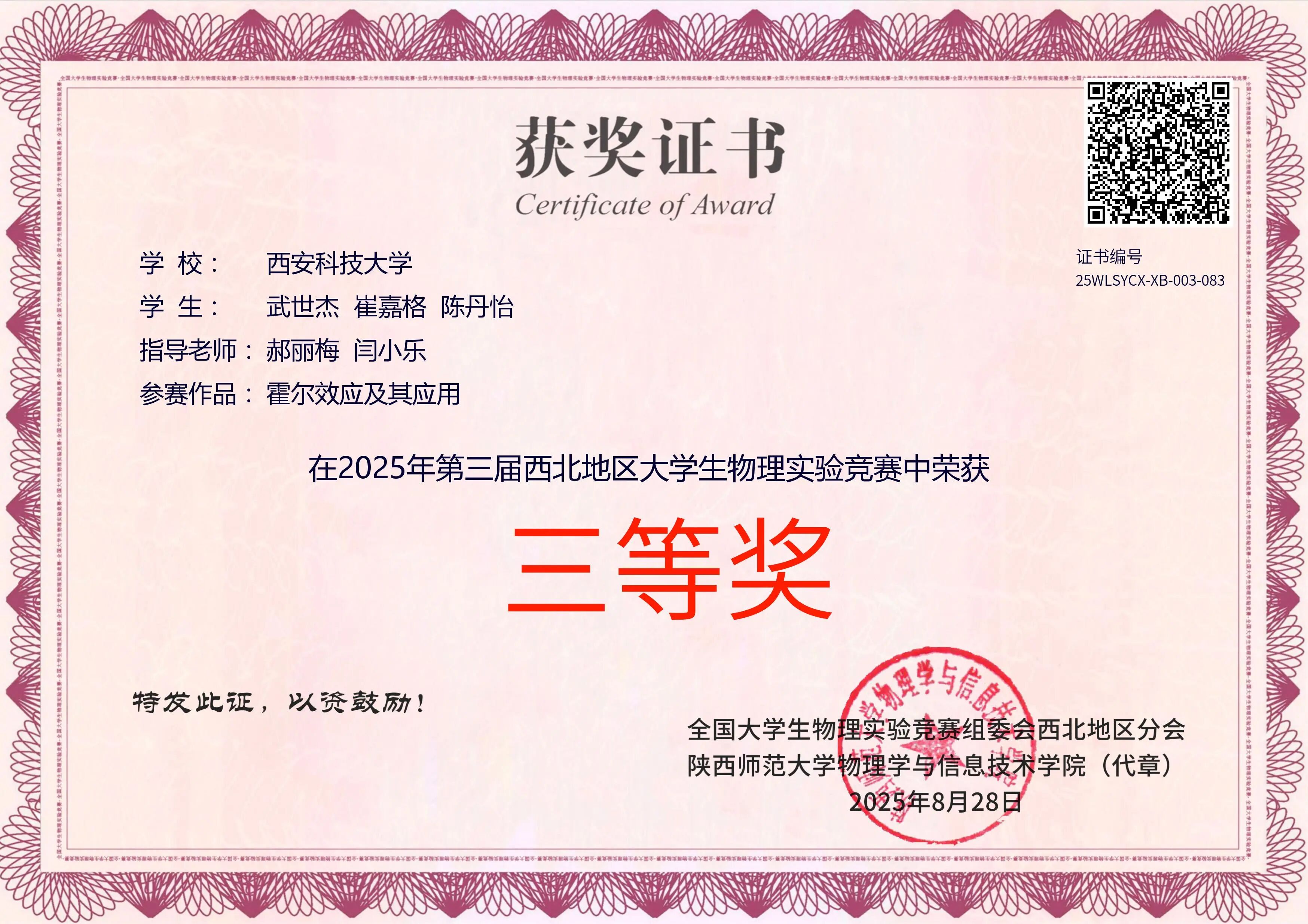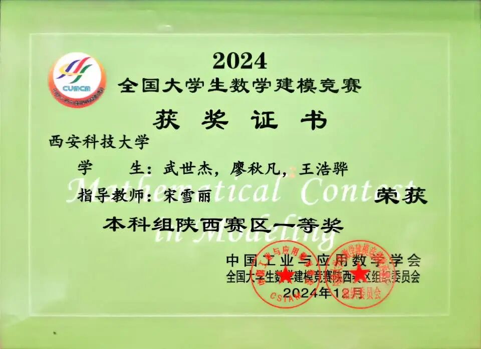 在2023-2024学年表现优异,综测排名班级第一、绩点第六,斩获多项学科竞赛与荣誉奖项:全国老员工数学竞赛三等奖、全国老员工英语竞赛三等奖、国家励志奖学金;全国老员工数学建模竞赛省级一等奖、全国老员工数学竞赛省级三等奖、数维杯S奖;“互联网+”校级三等奖、电子商务三创赛校级三等奖、优秀本科生一等奖。