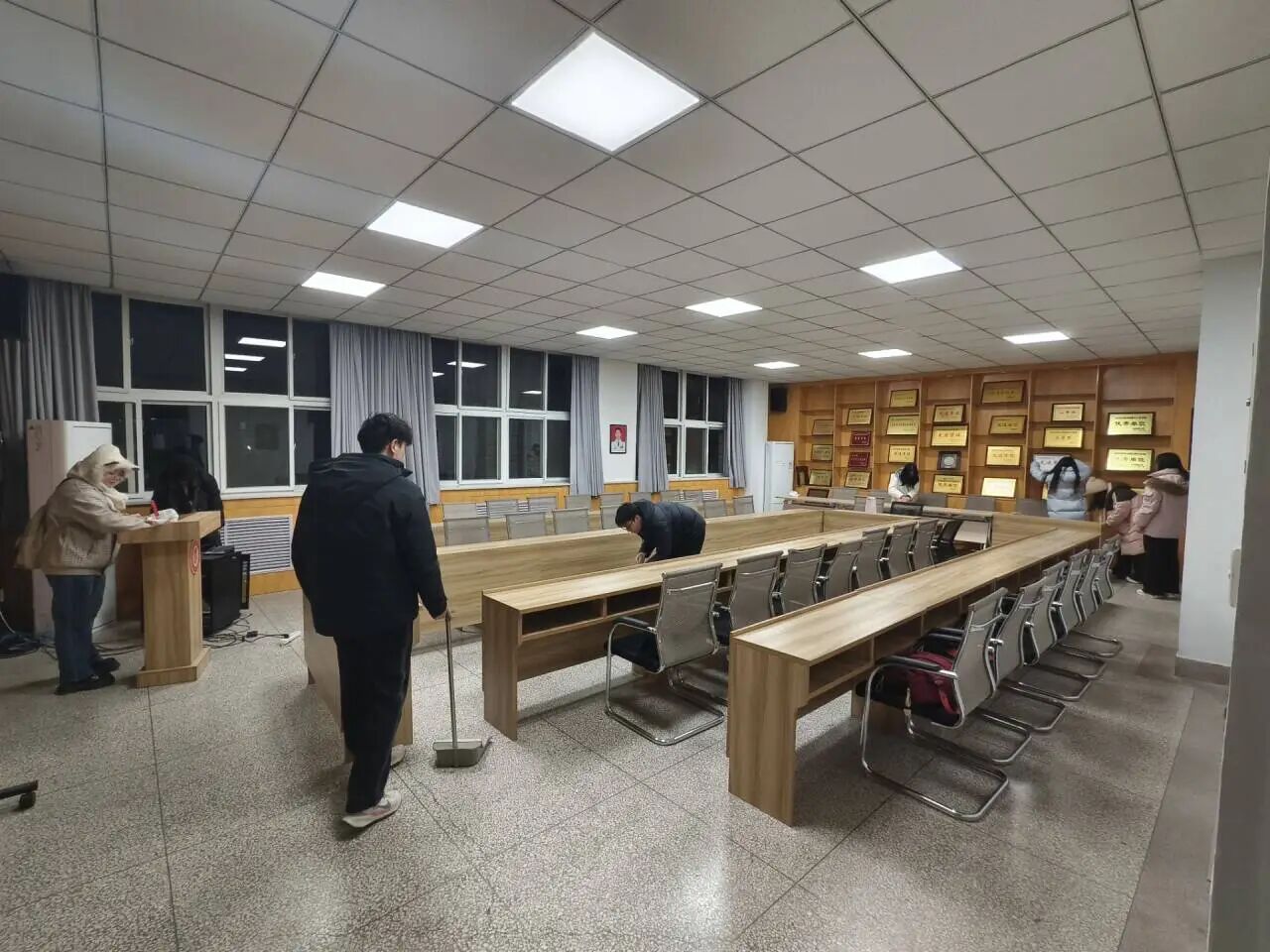 本次劳动实践区域覆盖了208会议室、220会议室、乒乓球室、二楼连廊及二楼大厅等公共空间。活动前,培训班明确了“分组负责、安全有序”的原则,将全体学员划分为五个小组,各组组长率先担当,精心筹划。劳动过程中,同学们热情高涨,分工协作,配合默契。大家不畏脏、不怕累,从“纸上学”到“事上练”,将爱校爱集体的意识融入到实实在在的行动中。