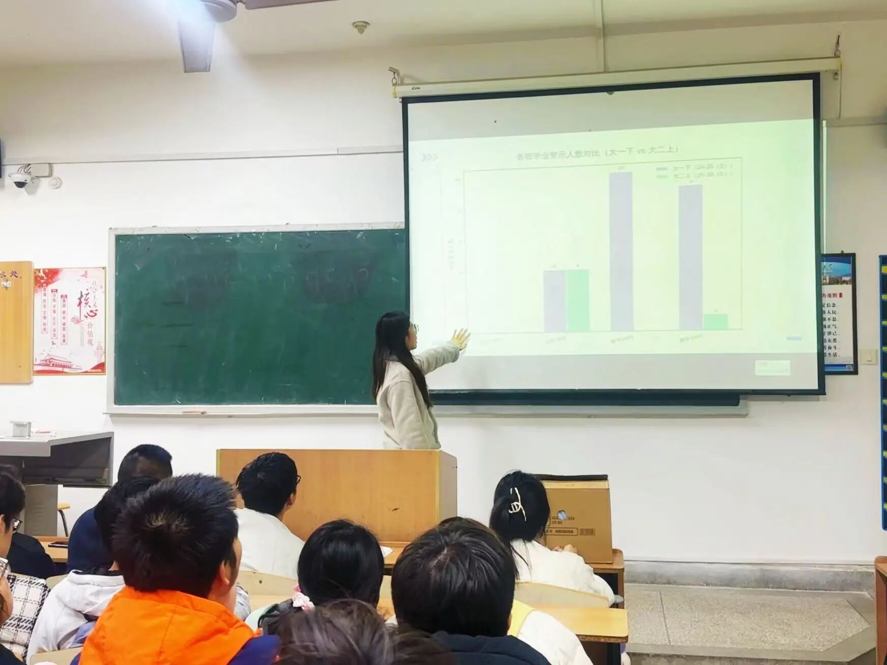 为进一步明确学业红线,段佳结合《员工手册》相关规定,详细解读了学业警示制度的具体条款、触发条件及严重后果。她特别向同学们提出“为什么退步”的思考,并强调“为什么大一下学期很关键”,指出这一阶段是学业基础夯实、学习习惯固化和成绩分化的关键期,提醒全体同学必须高度重视学业成绩,防微杜渐。