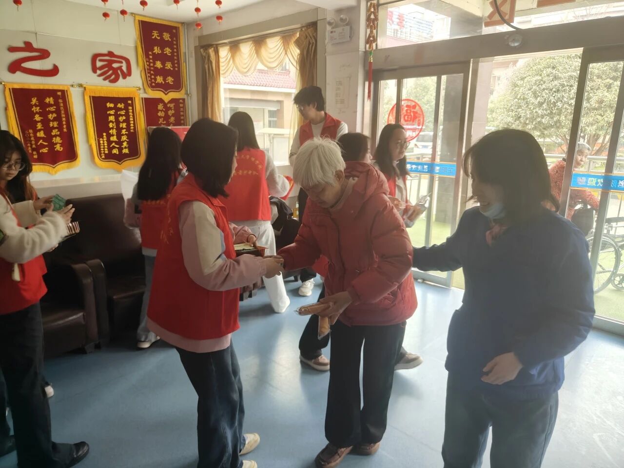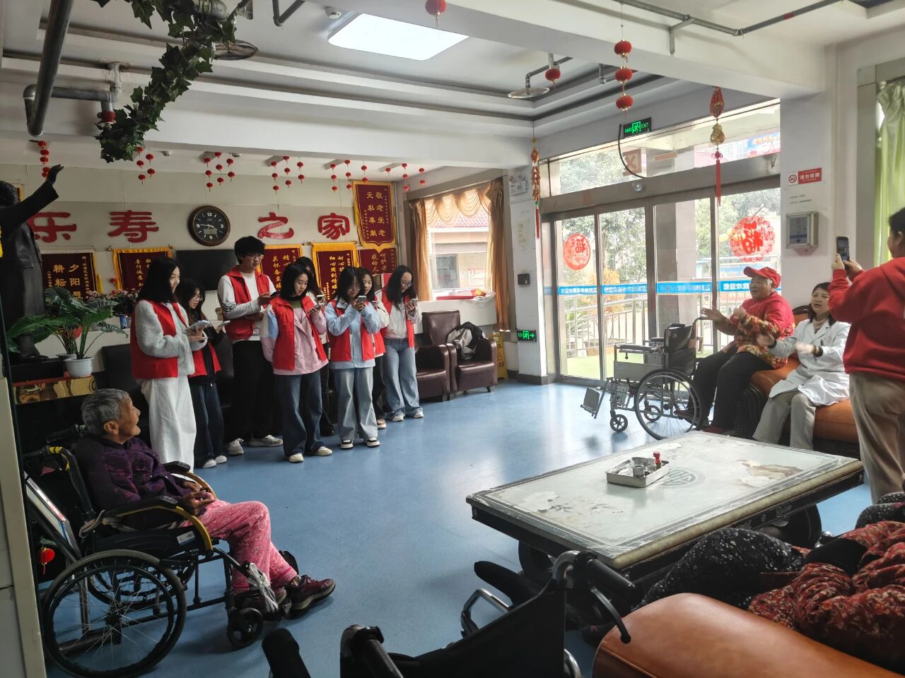 随后,同学们献上了一场简短而精彩的文艺表演。动听的歌声、活力的舞姿、深情的朗诵……一个个用心准备的节目赢得了老人们的阵阵掌声和欢笑声。一些老人被现场气氛感染,也兴致勃勃地参与其中,与同学们互动合唱,敬老院里洋溢着欢乐与祥和的氛围。表演结束后,同学们还主动帮助打扫庭院、整理房间,用实际行动为老人们营造更加整洁舒适的生活环境。
