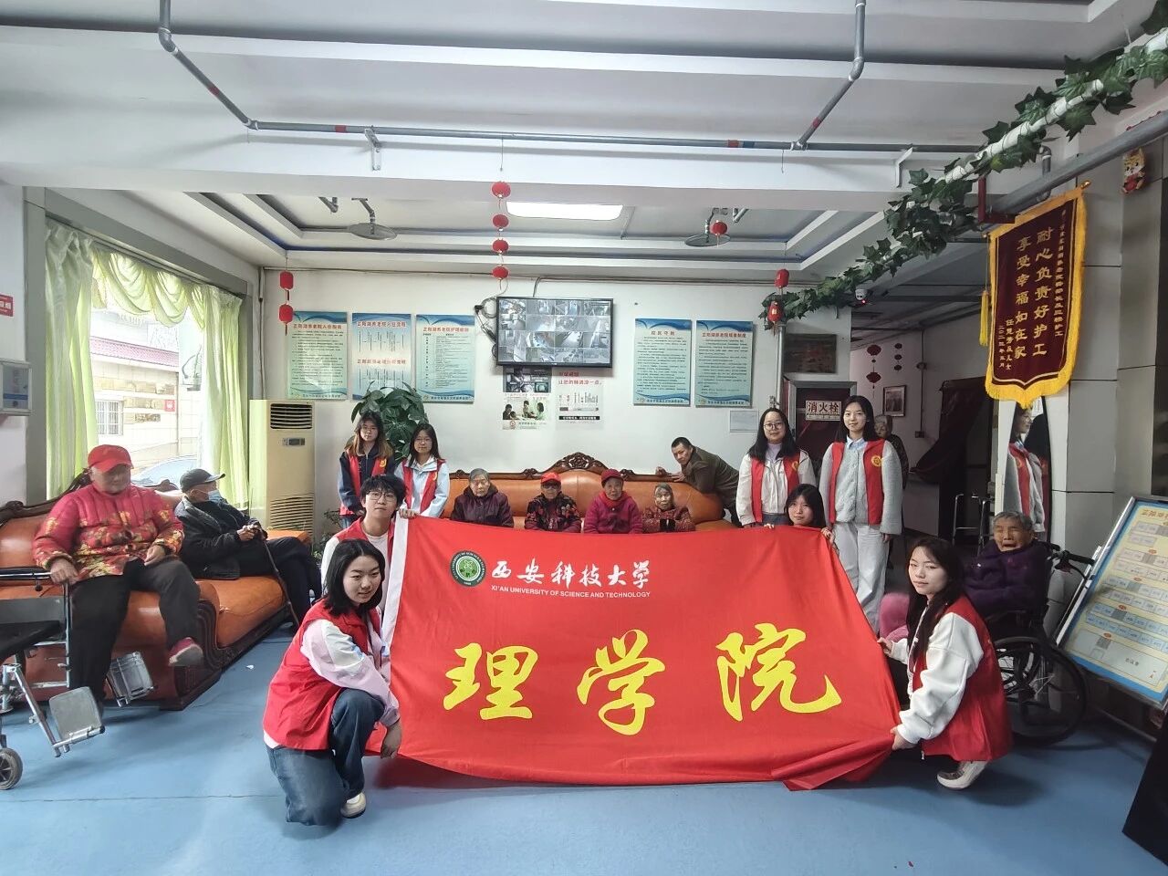 为弘扬中华民族尊老敬老的传统美德,增强同学们的社会责任感和奉献意识,3月16日,betway西汉姆联官方官网组织团学干部前往临潼区芷阳湖养老院,开展了以“银龄守望”为主题的敬老爱老志愿服务活动,为老人们送去温暖与关怀。